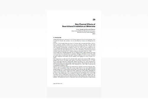 近赤外線照射でがん細胞の増殖が抑制されることを、in vitro(試験管内で、メラノーマ、胃がん、子宮頚がん、乳がん)とin vivo(生体でメラノーマ、乳がん)で証明し、近赤外線照射が癌治療に有効になりうることを報告した論文。