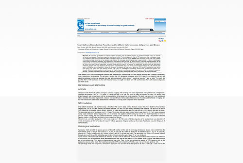 Tanaka Y, Matsuo K, Yuzuriha S. Near-infrared irradiation non-thermally affects subcutaneous adipocytes and bone. ePlasty 2011;11:e12:97-105. 近赤外線照射により、骨髄細胞が減少し、肉様膜の筋膜上の脂肪組織、骨皮質、脂肪幹細胞、骨髄幹細胞が長期にわたって増加することを報告した論文。