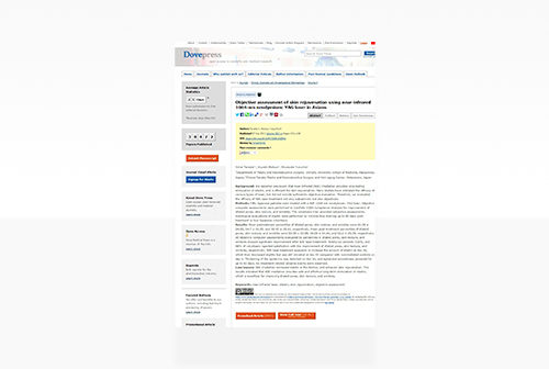 Tanaka Y, Matsuo K, Yuzuriha S. Objective assessment of skin rejuvenation using near-infrared 1064-nm Neodymium:YAG laser in Asians. Journal of Clinical, Cosmetic and Investigational Dermatology. 2011;4:123-30. 近赤外線照射により皮膚の若返りが可能で、毛穴の開き、肌理、しわの改善を客観的に評価し報告した論文。