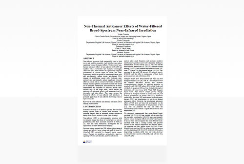 Tanaka Y, Tatewaki N, Fujimoto T, Nishida H. Non-thermal anticancer effects of water-filtered broad-spectrum near-infrared irradiation. International Journal of Cancer Research. 2014;48(2):1258-1265.