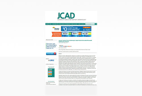 Tanaka Y. Long-term nasal and peri-oral tightening by a single fractional non-insulated microneedle radiofrequency treatment. The Journal of Clinical and Aesthetic Dermatology. 2017;10(2):45-51. 非絶縁マイクロニードルRF治療器による鼻と口周りの引き締め効果を報告した論文。